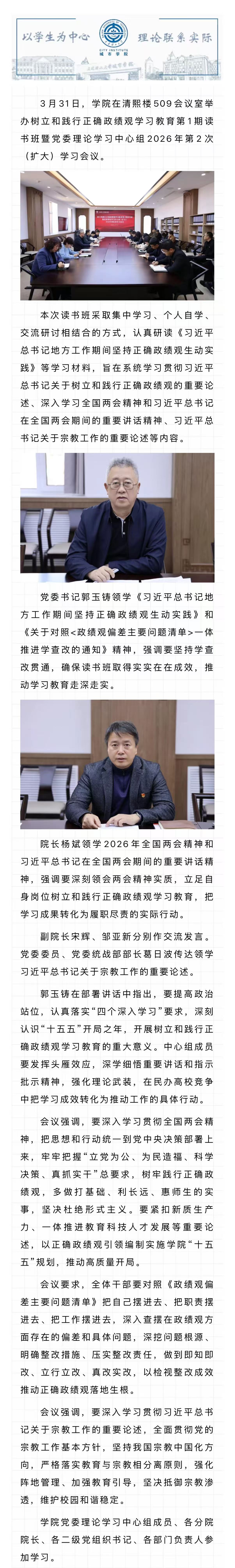 学院举办树立和践行正确政绩观学习教育第1期读书班暨党委理论学习中心组 2026年第2次(扩大)学习会议
